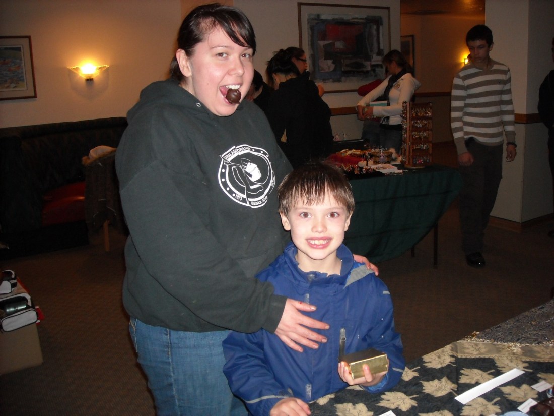 Midnight Madness, hosted by the Grand Aleutian Hotel, has come and gone. Hopefully, this also means an end to the endless candy madness in the house. In the midst of trying to wrap presents to send off in the mail and making 8 kinds of chocolates, the house was a disaster. The grandson was also “left to entertain himself.”